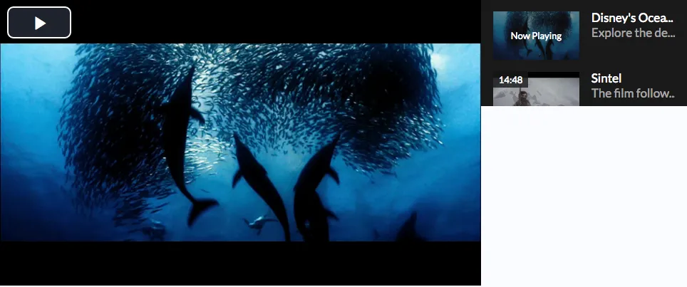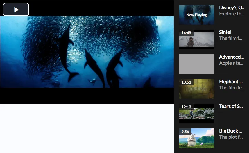 For this example, We’re using the videojs-playlist-ui and videojs-playlist plugins for the playlist functionality. We then wrap the player in a container and put the playlist-ui element in there as well.